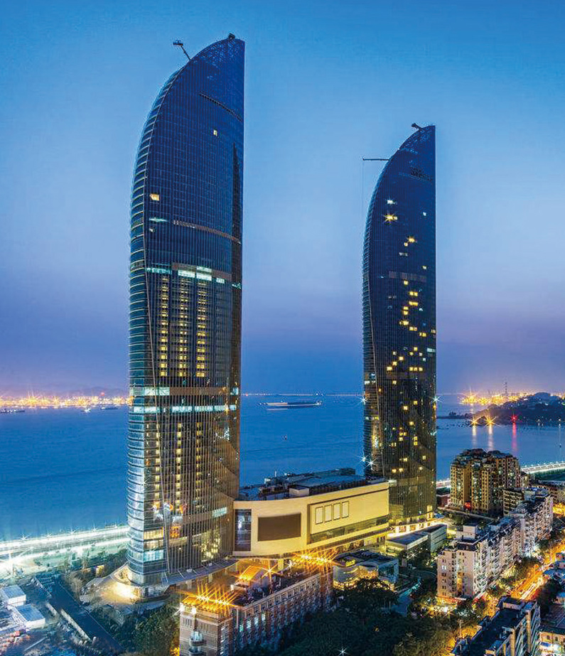 厦门康莱德酒店是厦门的滨海酒店之一,位于世茂海峡大厦B塔的37层至54层。